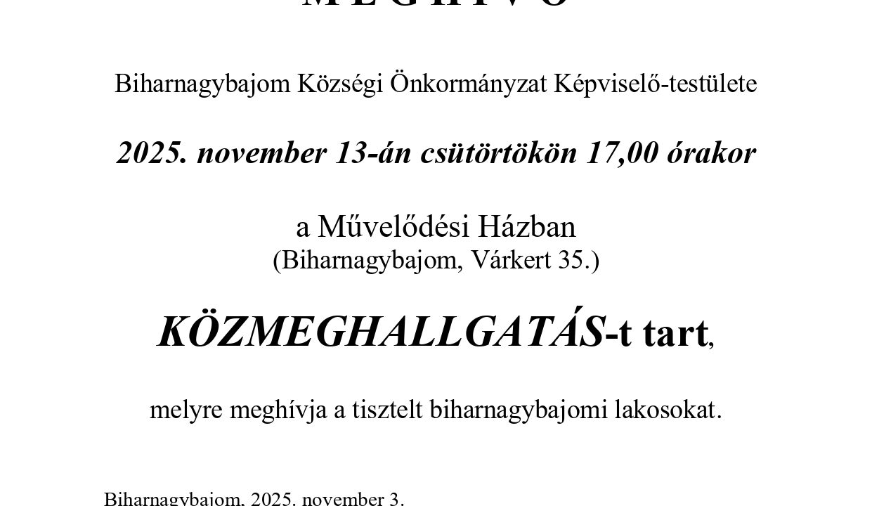 M E G H Í V Ó Biharnagybajom Község Önkormányzatának Képviselő-testülete 2025. június 25-én szerdán 9,00 órakor...