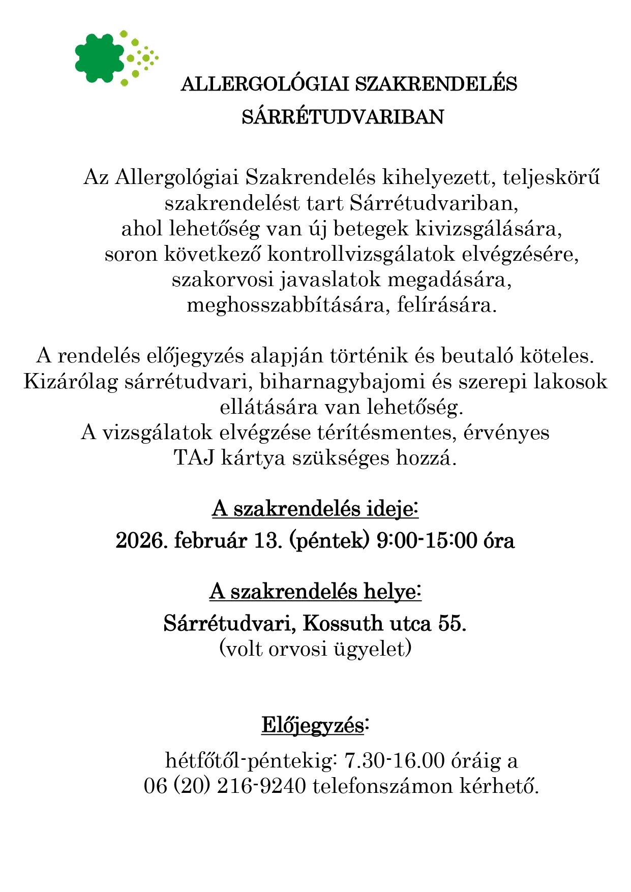 Híreink Allergológiai szakrendelés Szitó Sándor 2026. február 06. Kapcsolódó tartalom Nincs kapcsolódó tartalom Continue Reading Previous: Közjegyzői hirdetmény Hasonló cikkek Közjegyzői hirdetmény Híreink Közjegyzői hirdetmény 2026. január 26. Helyi önazonosság védelmi eszközök bevezetése Biharnagybajomban Híreink Helyi önazonosság védelmi eszközök bevezetése Biharnagybajomban 2026. január 19. Közjegyzői hirdetmény Híreink Közjegyzői hirdetmény 2026. január 07.