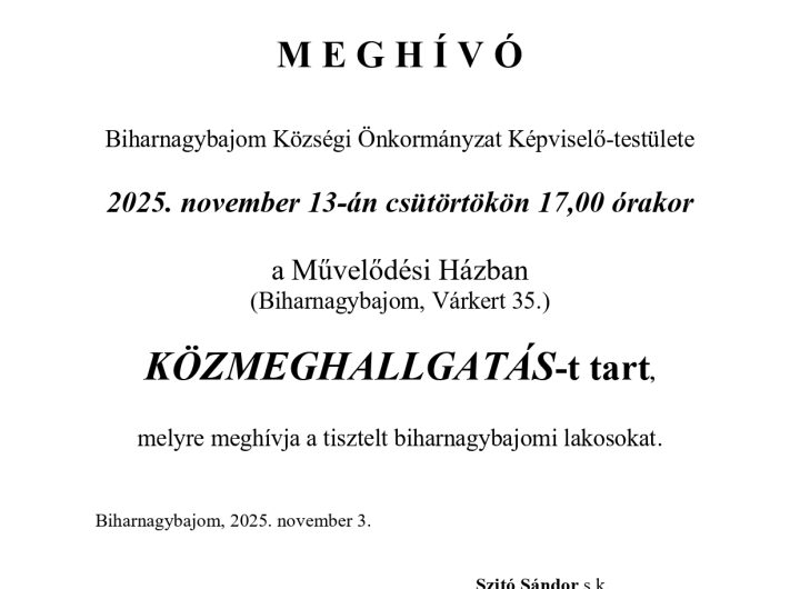 M E G H Í V Ó Biharnagybajom Község Önkormányzatának Képviselő-testülete 2025. június 25-én szerdán 9,00 órakor...